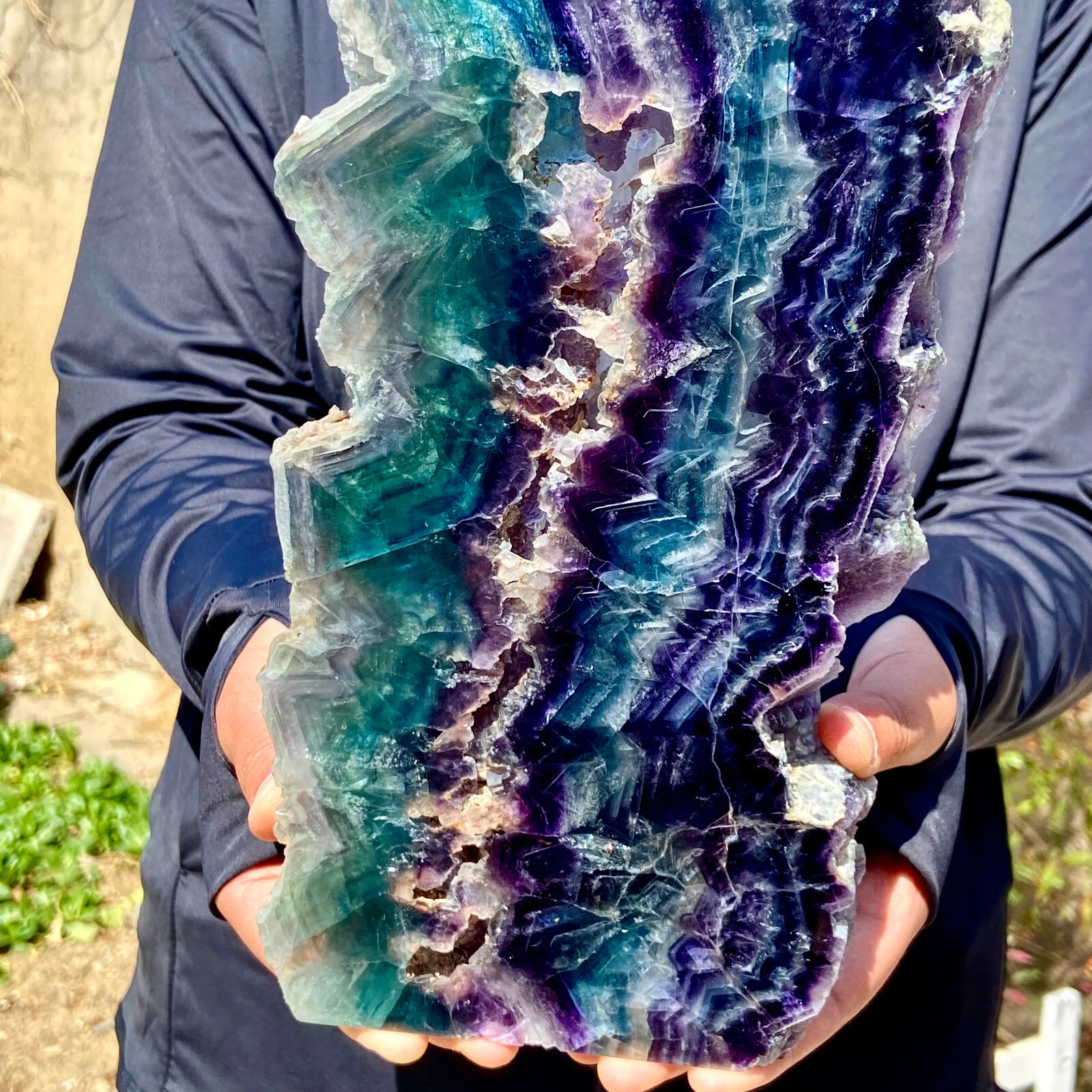 Doživite izjemno lepoto in energijo naravnega fluoritnega kristala v obliki elegantnega obeliska. Ta vrhunski kos tehta 1.72 kg in se ponaša z edinstveno kombinacijo naravnih odtenkov, kot so zelena, vijolična in modra, ki se harmonično prelivajo skozi celotno strukturo kristala. Fluorit je znan kot “kamen razuma”, saj spodbuja jasnost misli, mentalno zbranost in duhovno rast.